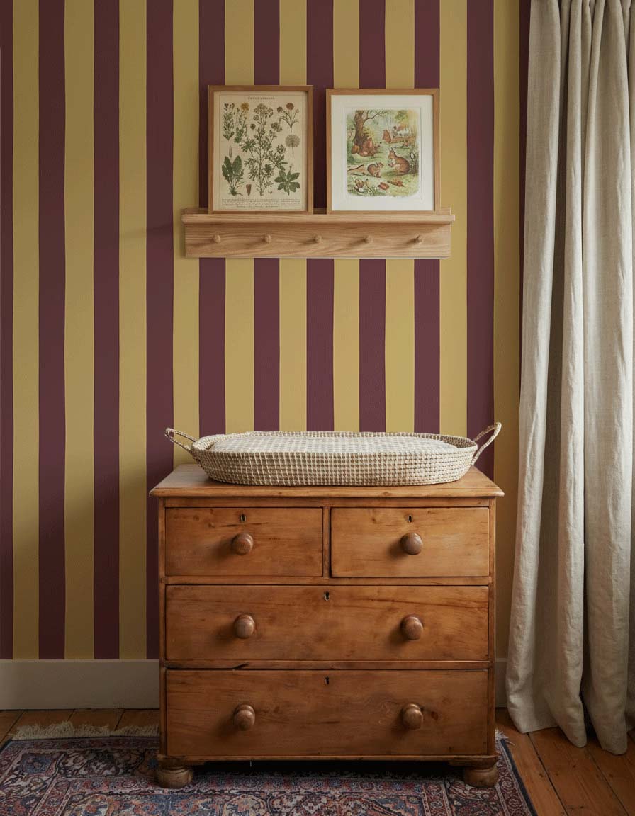 Behang Atelier Chien Brede Strepen Bordeaux Okergeel