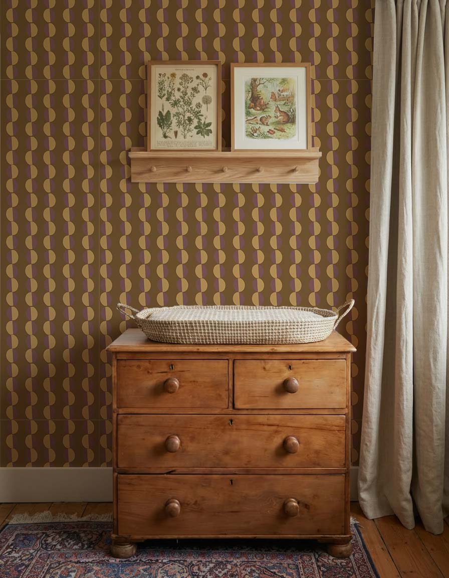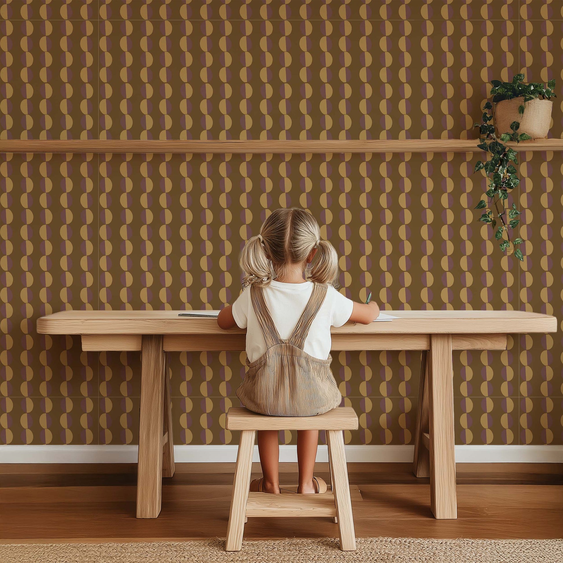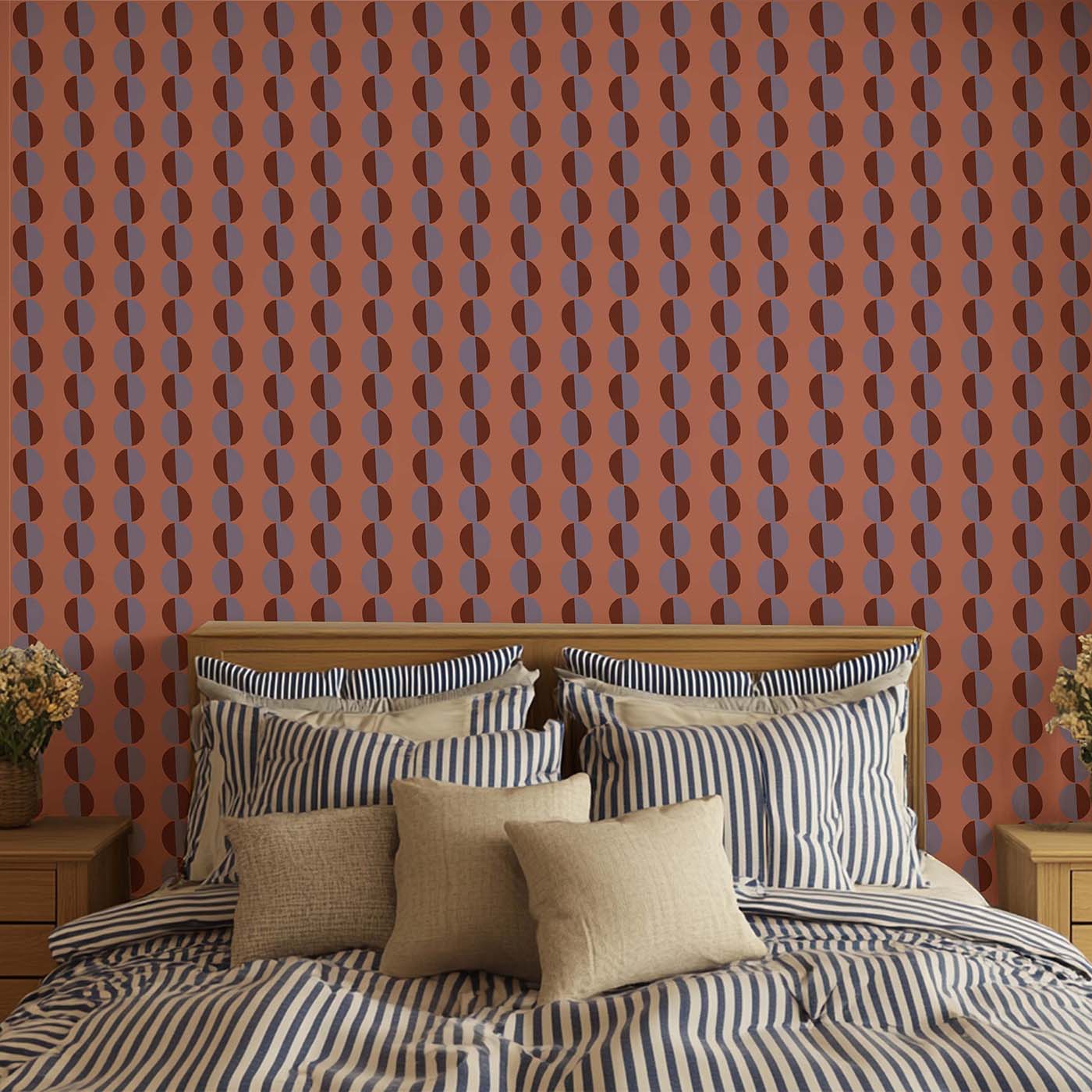 Met Behang Cirkels Zalm geef je je ruimte een speels karakter. Het ontwerp bestaat uit halve cirkels in twee verschillende kleuren, die als een streep naar beneden lopen.