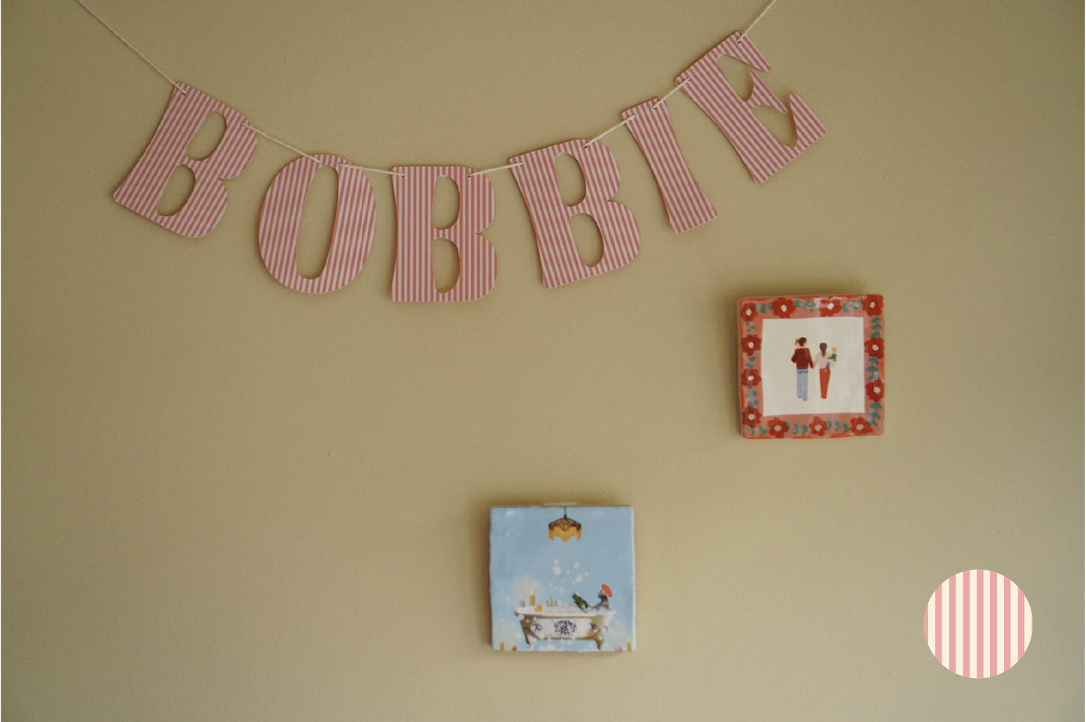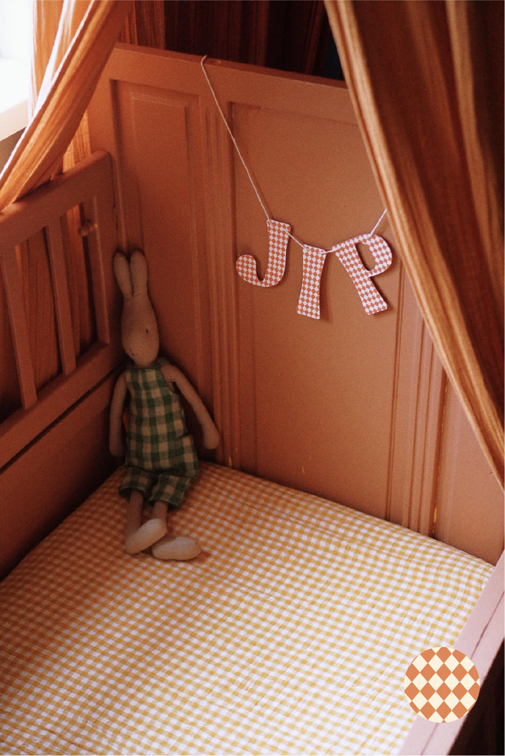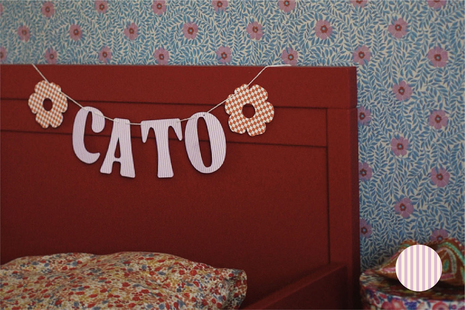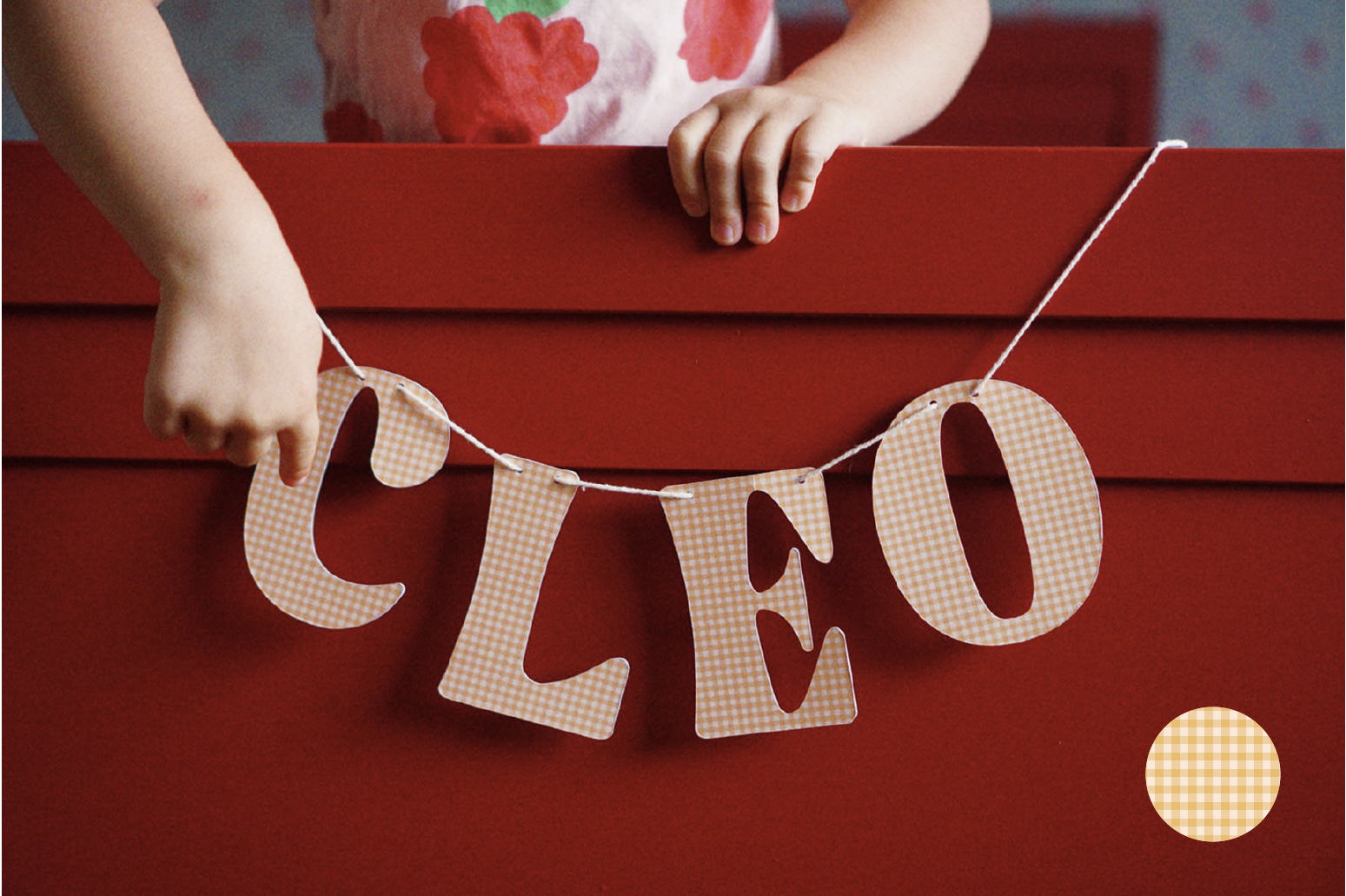 Deze handgemaakte naamslinger kun je ophangen in de kinderkamer, voor het raam bij een geboorte of gebruiken tijdens een verjaardagsfeestje. De slinger wordt speciaal voor jou op maat gemaakt. De patronen op de letters zijn ontworpen door Chien.