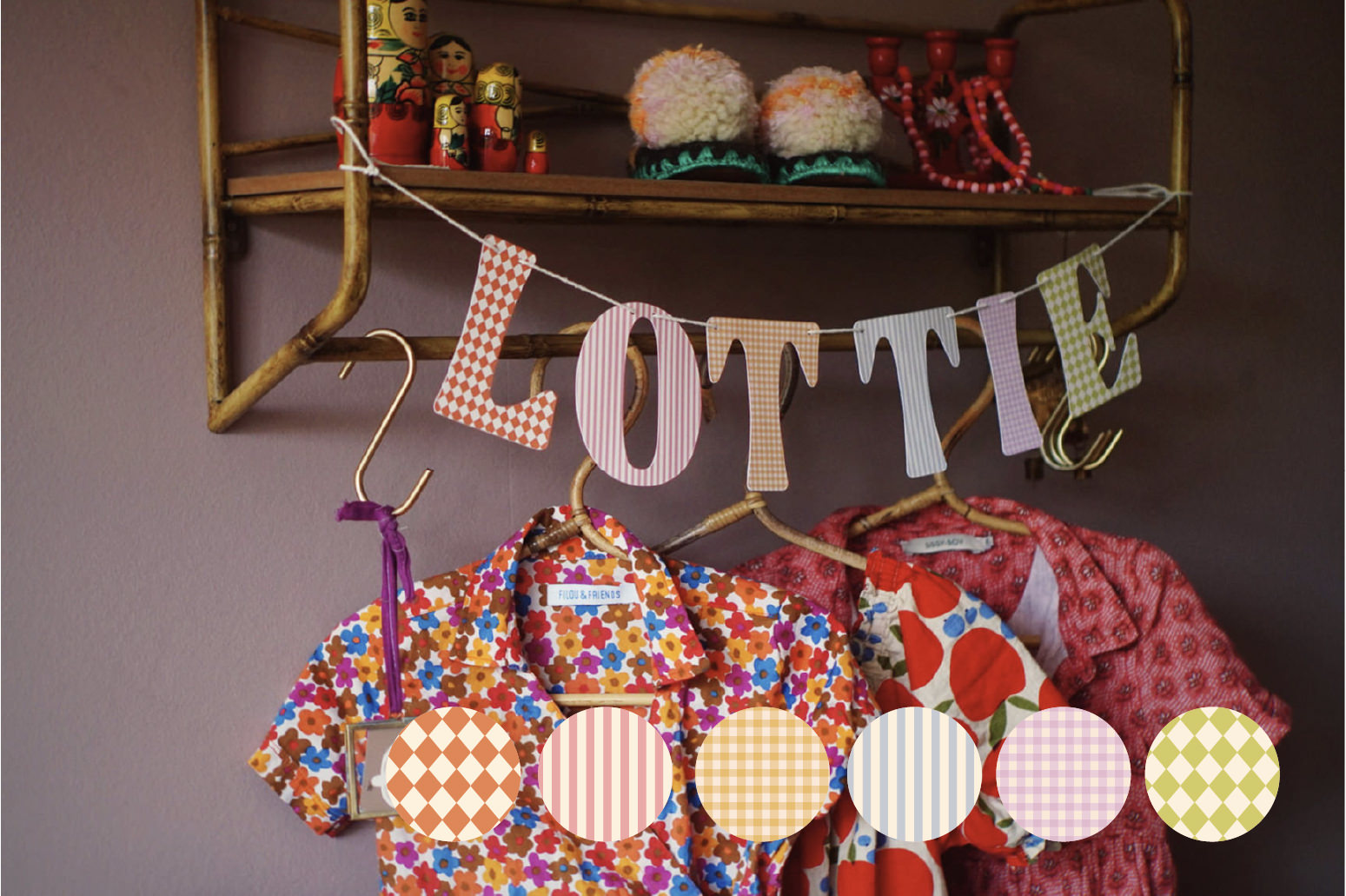 Je bepaalt zelf hoe de slinger eruit komt te zien: kies één patroon voor alle letters of combineer meerdere patronen. Bekijk de foto's voor inspiratie en voorbeelden.