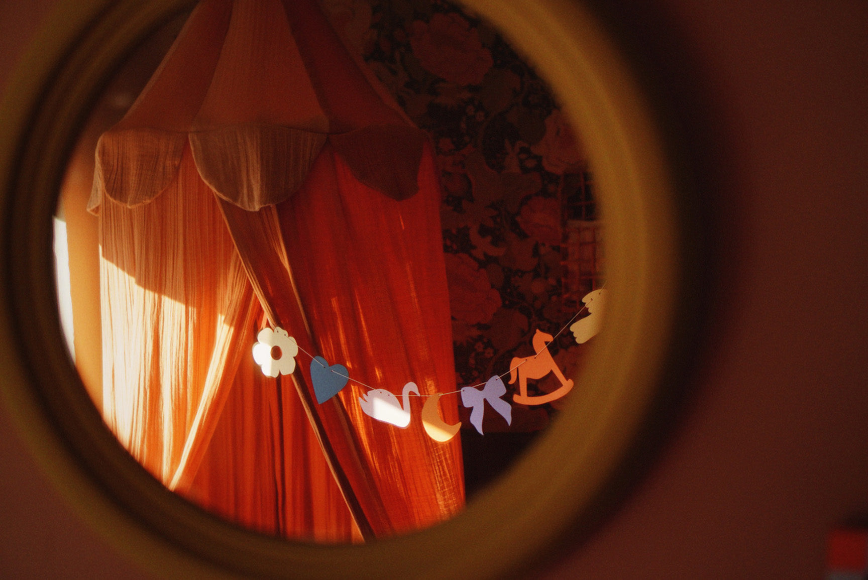 Deze handgemaakte vormslinger is een vrolijke toevoeging aan de kinderkamer.
